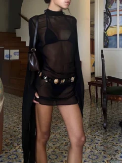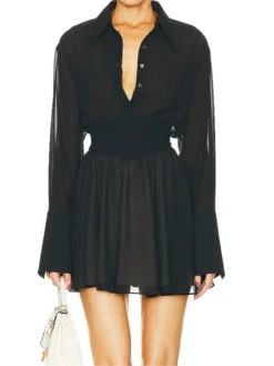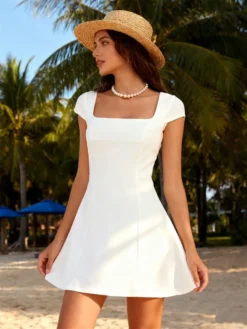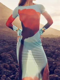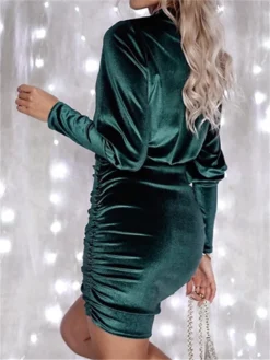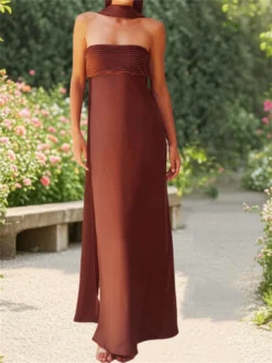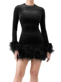 Women Autumn Dress Striped Boat-Neck Long Sleeve