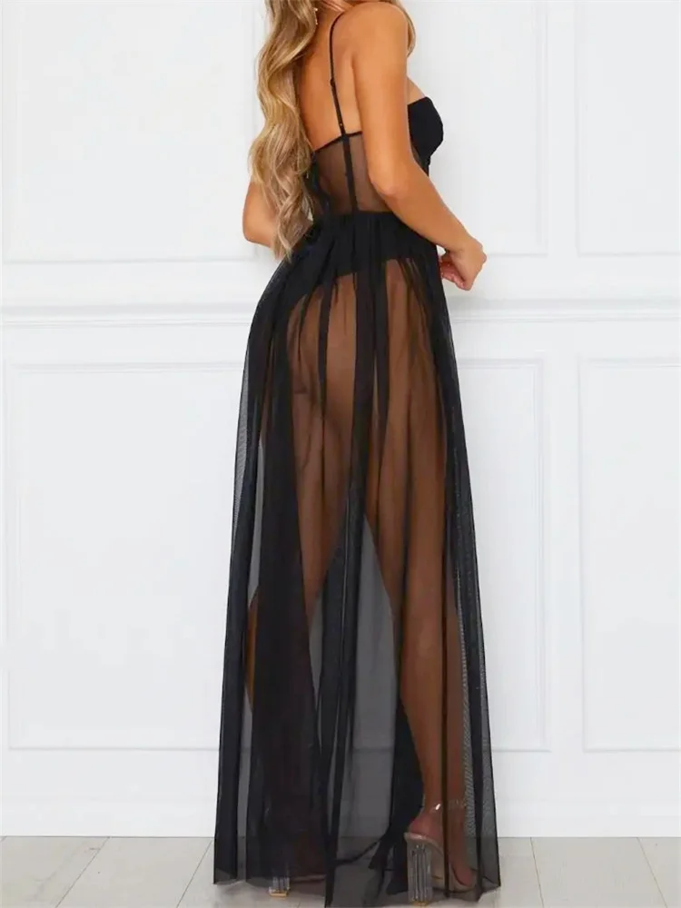 2024 Fashion Mesh Sheer Bodysuit Dress