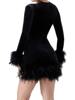 Be the first to review “Women Autumn Dress Feather Trim Long Sleeve” Cancel reply