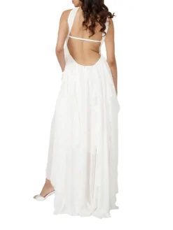 Solid color, ruched bust, decorative stars, halter neck and backless, floor length, irregular ruffled hem design, cocktail party dress, easy to show your charming curves, comfortable for you all day long.